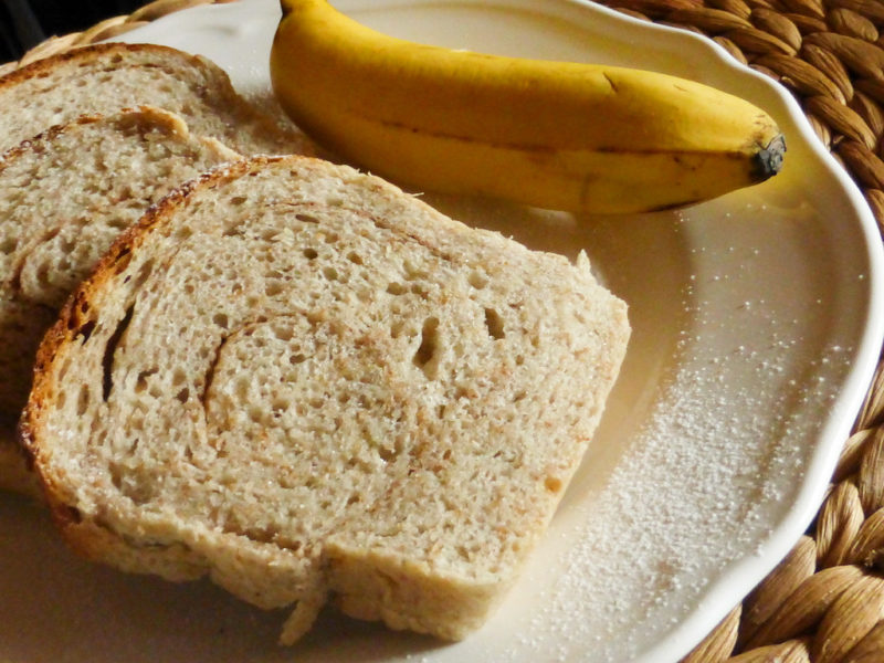 A právě jeden Wynin chleba, banánový se skořicí, mi byl předlohou tohoto receptu – z knihy jsem si půjčila jen nápad, těsto jsem nechala déle kynout přes preferment a výsledkem byl úžasně voňavý, nepříliš sladký chlebík.