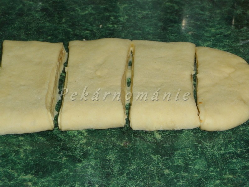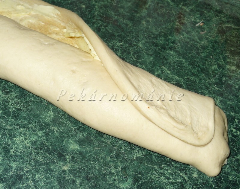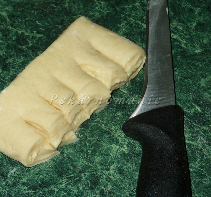 - -po čtvrtinách přeložíme celou šířku těsta-