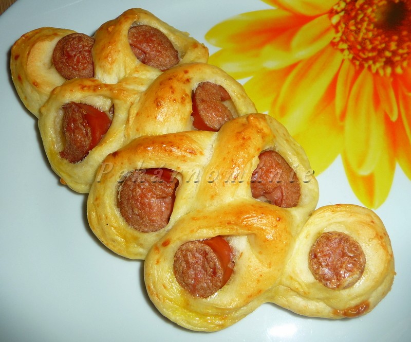 Pletýnky s párkem jsem kdysi dávno viděla poprvé na webu kuharka.ru – a odtamtud se pak tento šikovný nápad na párky v rohlíku šířil dál.