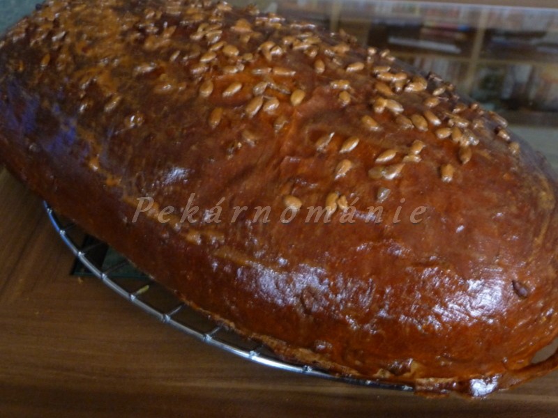 Po 20min pečení můžeme potřít znovu, semínka budou lépe držet.