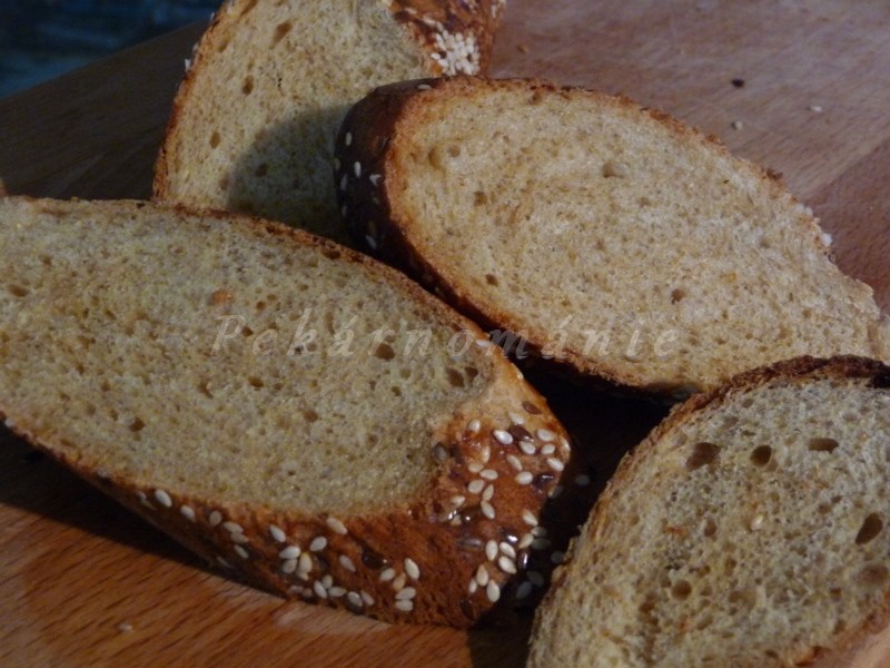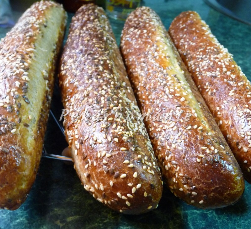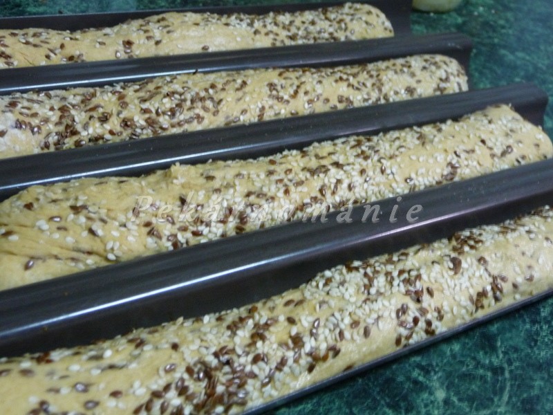 Jedny z mnoha baget, které se v našíé kuchyni objevují častěji. Lehoulinké, na řezu díky Meltě tmavé, plné semínek, vonící sýrem.